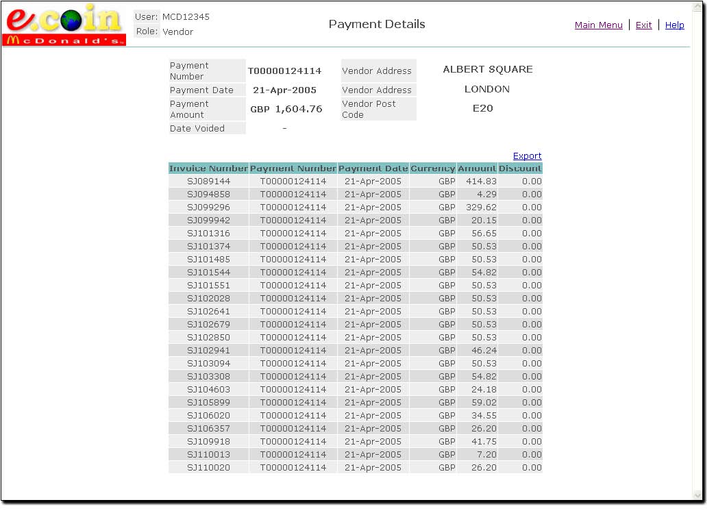 The Payment date must be the date which McDonald’s Restaurants generated the payment. A payment run is normally generated every Thursday for the invoices approved that week.