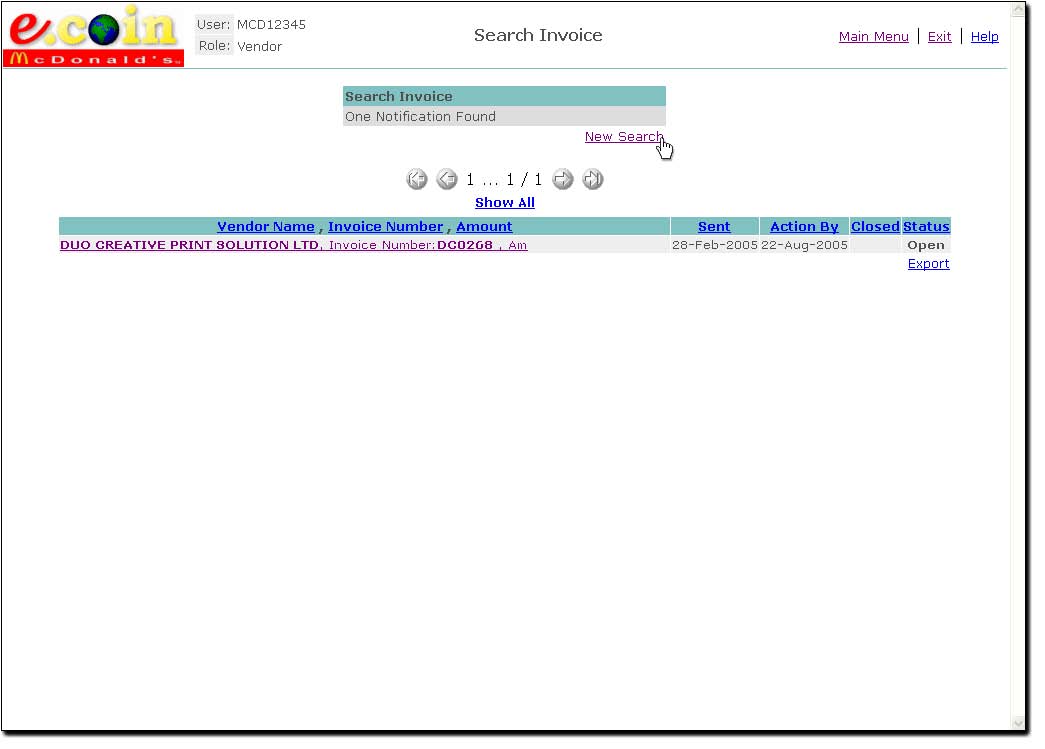 To perform a new invoice search just click on the New Search link near the top of the page.